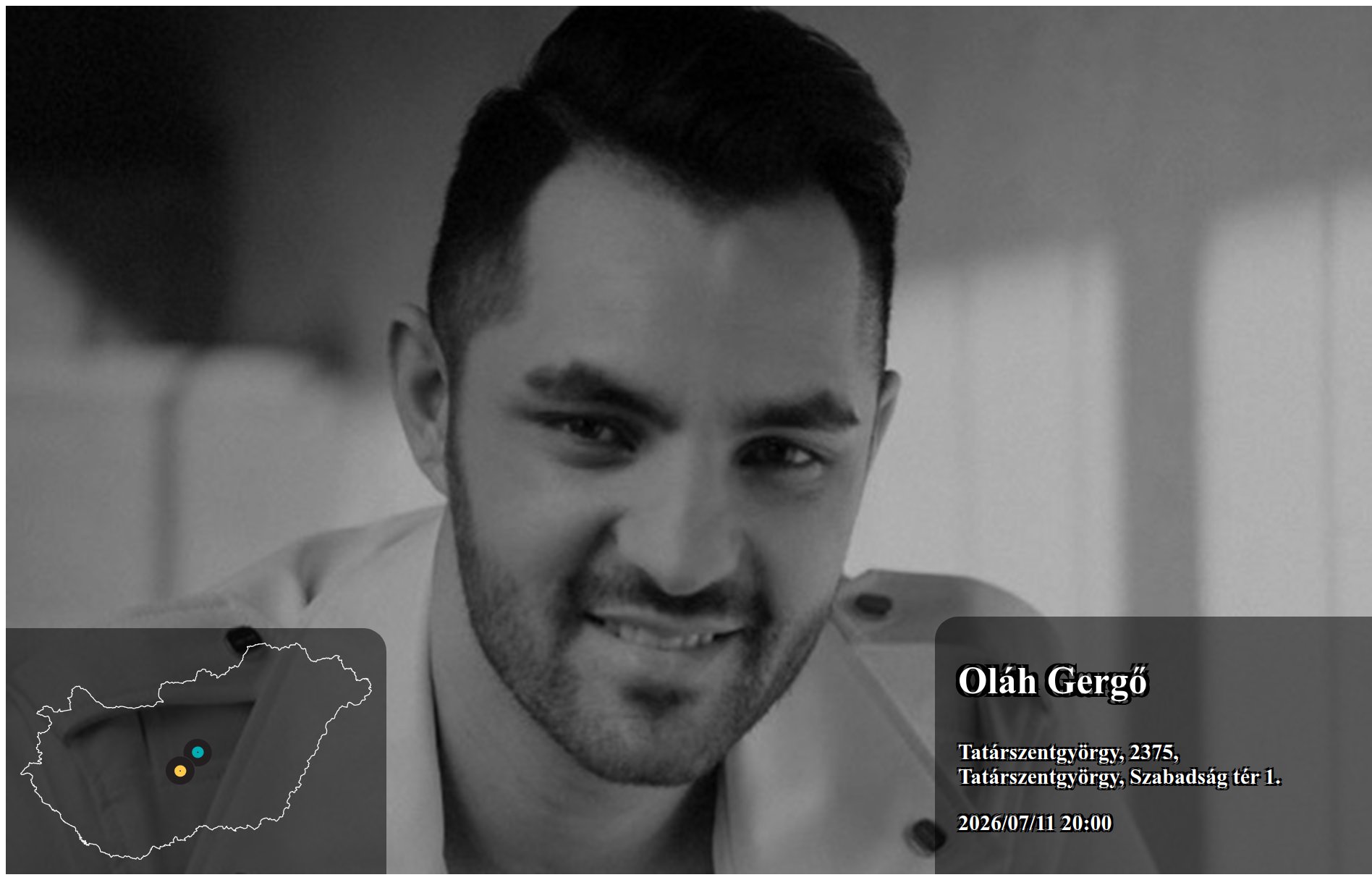 Oláh Gergő 2026/07/11 20:00 2375, Tatárszentgyörgy, Szabadság tér 1. fellépés